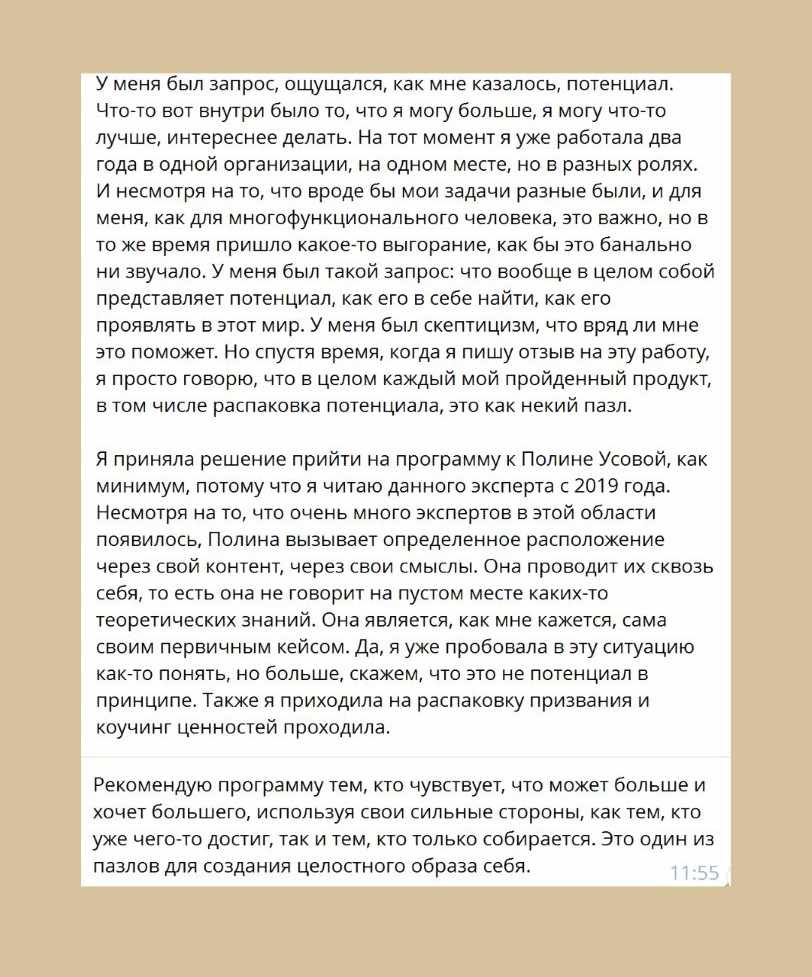 Если хотя бы 3 пункта вам откликнулись — пора действовать, иначе ещё год пройдёт в том же месте. Вы на пороге новой точки роста. И именно сейчас важно не упустить момент, потому что вам пора на новый уровень реализации вашего потенциала… Переход на новый уровень не спрашивает, хочешь ты его или нет. Он просто происходит, и ты уже не сможешь жить ИНАЧЕ.