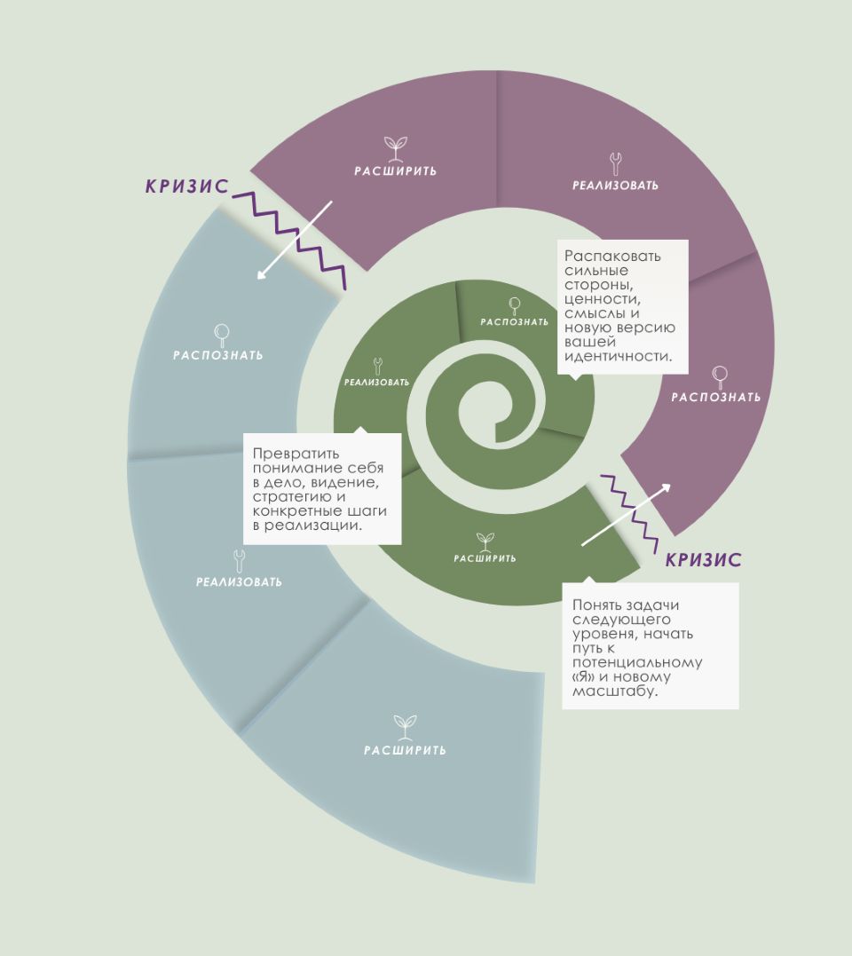 Мы не можем реализовать то, что не открыли в себе. На новом витке вам нужно заново увидеть свою суперсилу, распаковать сильные стороны, ценности, смыслы и новую версию своей идентичности.